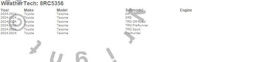 Brand: WeatherTechPart Number: 8RC5356Tonneau Cover Type: UPC: 787765968485