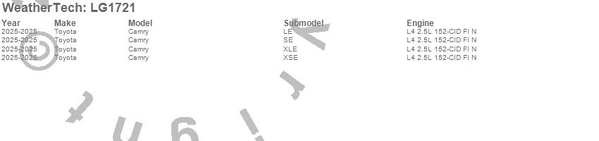Below is an abbreviated list of applications for the LampGard.Camry, Toyota, 2026, 2025