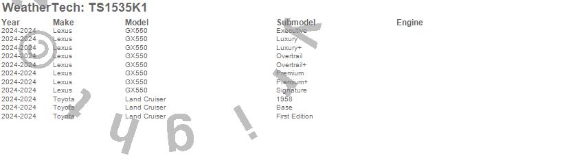 Below is an abbreviated list of applications for the WeatherTech SunShade Full Vehicle Kit.GX550, Land Cruiser, Lexus, Toyota, 2025, 2024