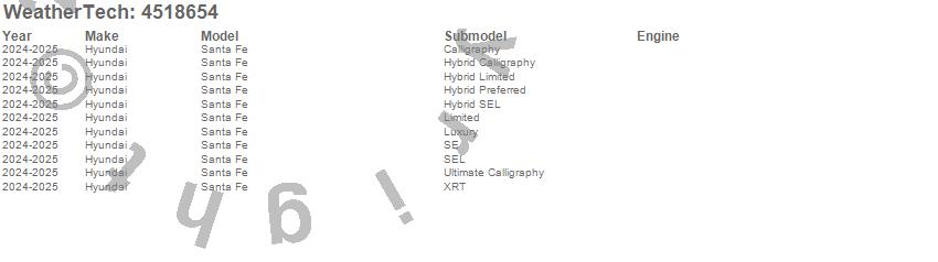 Below is an abbreviated list of applications for the FloorLiner DigitalFit.Santa Fe, Hyundai, 2026, 2025, 2024