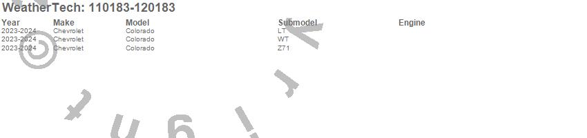 Brand: WeatherTechPart Number: 110183-120183Mud Flap Kit Type: BlackUPC: 787765613347