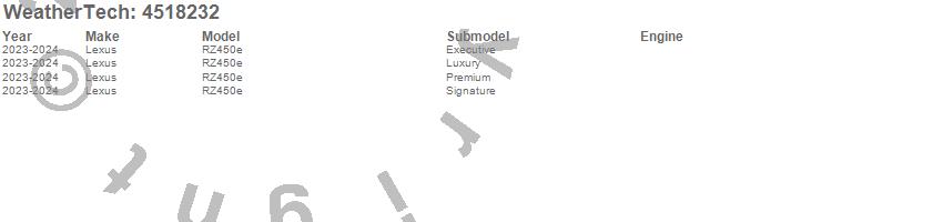 Below is an abbreviated list of applications for the FloorLiner DigitalFit.RZ450e, Lexus, 2024, 2023