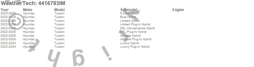 Below is an abbreviated list of applications for the FloorLiner HP.Tucson, Hyundai, 2026, 2025, 2024, 2023, 2022