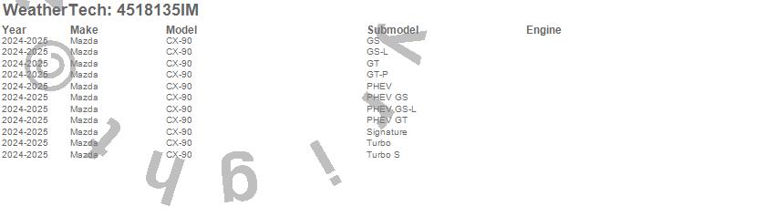 Below is an abbreviated list of applications for the FloorLiner HP.CX-90, Mazda, 2025, 2024