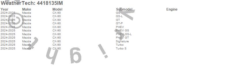 Below is an abbreviated list of applications for the FloorLiner HP.CX-90, Mazda, 2026, 2025, 2024