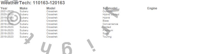 Below is an abbreviated list of applications for the MudFlap No-Drill DigitalFit MudFlap Kit.Crosstrek, Subaru, 2023, 2022, 2021, 2020, 2019, 2018