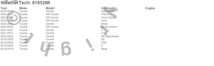 Below is an abbreviated list of applications for the Side Window Deflector.Corolla, GR Corolla, Toyota, 2025, 2024, 2023, 2022, 2021, 2020, 2019