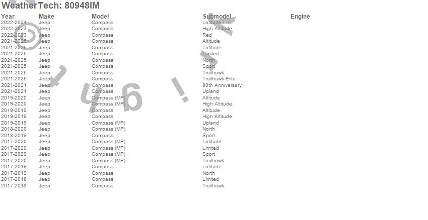 Below is an abbreviated list of applications for the Side Window Deflector.Compass, Jeep, 2026, 2025, 2024, 2023, 2022, 2021, 2020, 2019, 2018, 2017