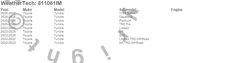 Below is an abbreviated list of applications for the Side Window Deflector.Tundra, Toyota, 2026, 2025, 2024, 2023, 2022