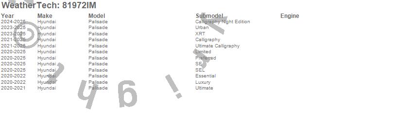 Below is an abbreviated list of applications for the Side Window Deflector.Palisade, Hyundai, 2025, 2024, 2023, 2022, 2021, 2020