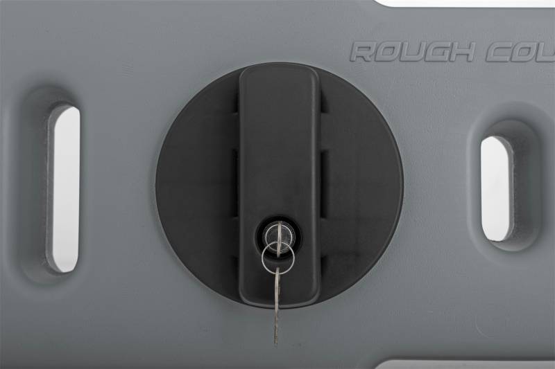 Buy this Flat Fluid Containers Rough Country 99062A Capacity 10 L. - Gray - w/Lockable Mount here at SVCustoms.com an authorized Rough Country Gas/Water Can dealer and distributor.