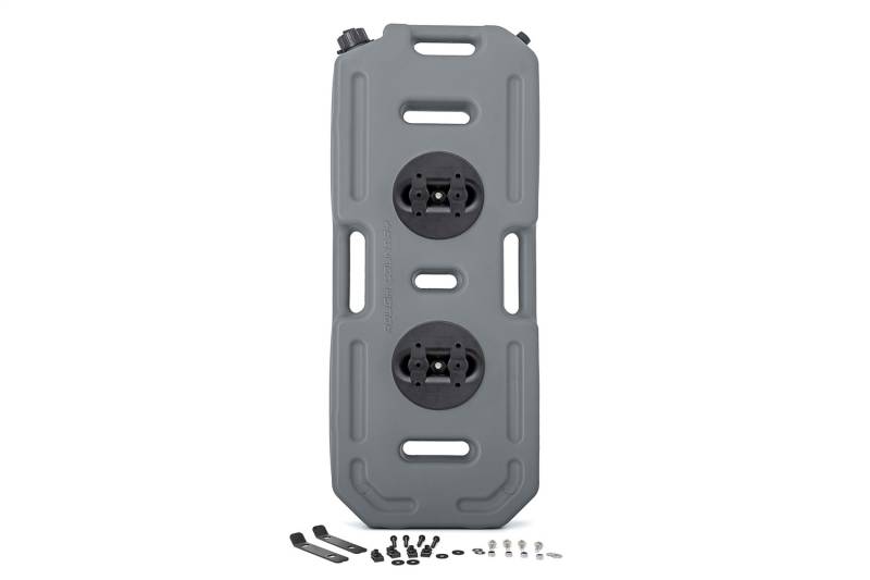 Buy this Flat Fluid Containers Rough Country 99064A Capacity 20 L. - Gray - w/Lockable Mount here at SVCustoms.com an authorized Rough Country Gas/Water Can dealer and distributor.