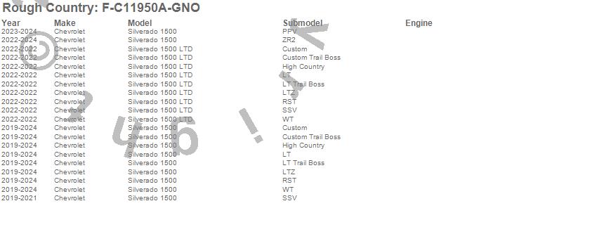 Brand: Rough CountryPart Number: F-C11950A-GNOFender Flare Type: Thunderstorm GrayUPC: 840269956706