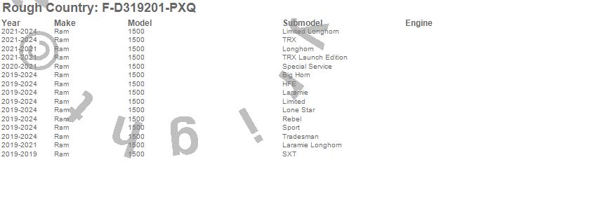 Brand: Rough CountryPart Number: F-D319201-PXQFender Flare Type: BlackUPC: 840269953217