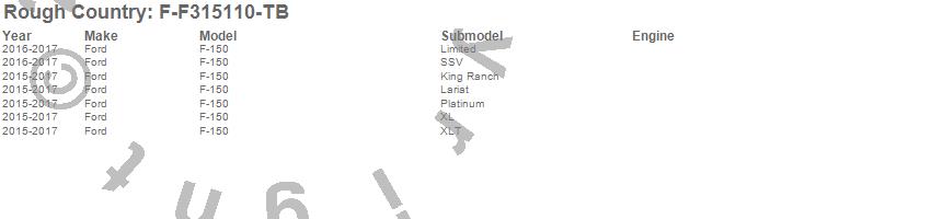 Brand: Rough CountryPart Number: F-F315110-TBFender Flare Type: Real SteelUPC: 840269953279