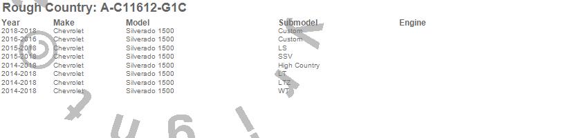 Brand: Rough CountryPart Number: A-C11612-G1CFender Flare Type: Defender - OvercastUPC: 840269957970