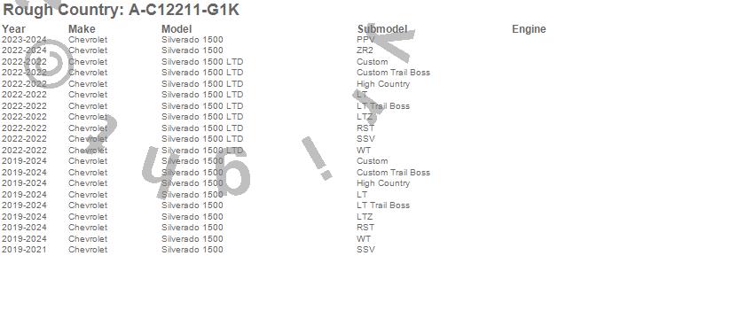 Below is an abbreviated list of applications for the Fender Flares.Silverado 1500, Silverado 1500 LTD, Chevrolet, 2025, 2024, 2023, 2022, 2021, 2020, 2019
