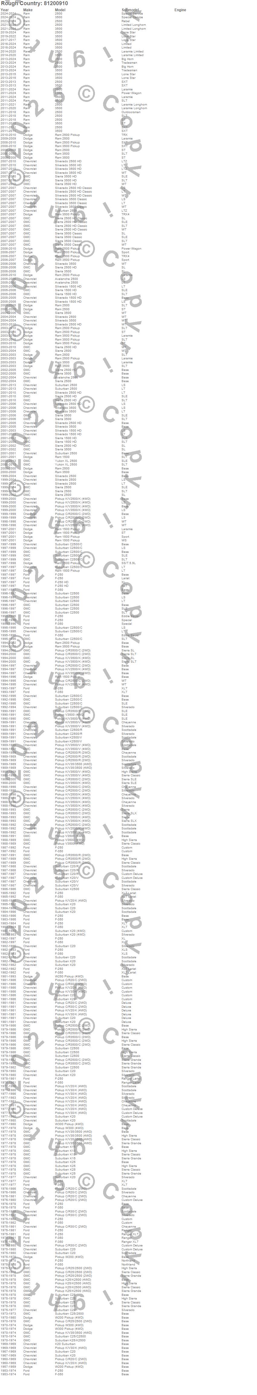 Below is an abbreviated list of applications for the Series 81 Wheel.2500, 3500, Avalanche 2500, C20 Pickup, C20 Suburban, C25 Suburban, C25/C2500 Pickup, C25/C2500 Suburban, C2500 Pickup, C2500 Suburban, C30 Pickup, C35/C3500 Pickup, C3500 Pickup, F-250, F-250 HD, F-350, K15 Suburban, K20 Pickup, K20 Suburban, K25 Pickup