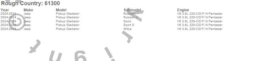 Below is an abbreviated list of applications for the Leveling Lift Kit.Pickup Gladiator, Jeep, 2024