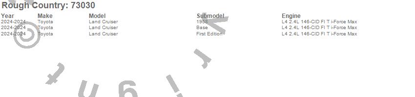 Below is an abbreviated list of applications for the Leveling Lift Kit w/Shocks.Land Cruiser, Toyota, 2024