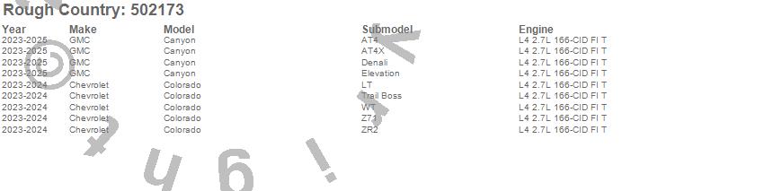 Below is an abbreviated list of applications for the Leveling Strut Kit.Canyon, Colorado, Chevrolet, GMC, 2025, 2024, 2023, 2022, 2021, 2020, 2019, 2018, 2017, 2016, 2015
