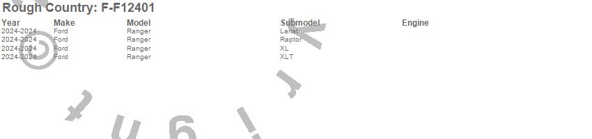 Brand: Rough CountryPart Number: F-F12401Fender Flare Type: UPC: 840269958700