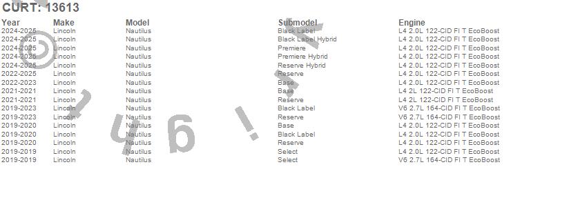 Below is an abbreviated list of applications for the Class III 2 in. Receiver Hitch.Nautilus, Lincoln, 2025, 2024