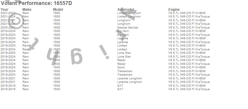Below is an abbreviated list of applications for the DryTech Filter Closed Box Air Intake.1500, Ram, 2024, 2023, 2022, 2021, 2020, 2019