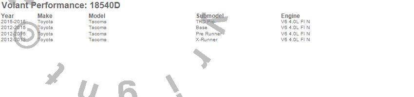 Below is an abbreviated list of applications for the DryTech Filter Closed Box Air Intake.Tacoma, Toyota, 2015, 2014, 2013, 2012