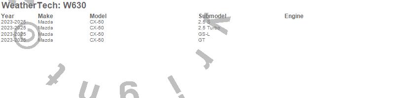 Below is an abbreviated list of applications for the All Weather Floor Mats.CX-50, Mazda, 2025, 2024, 2023