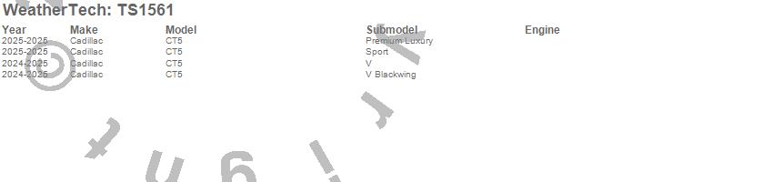 Below is an abbreviated list of applications for the WeatherTech SunShade.CT5, Cadillac, 2025, 2024
