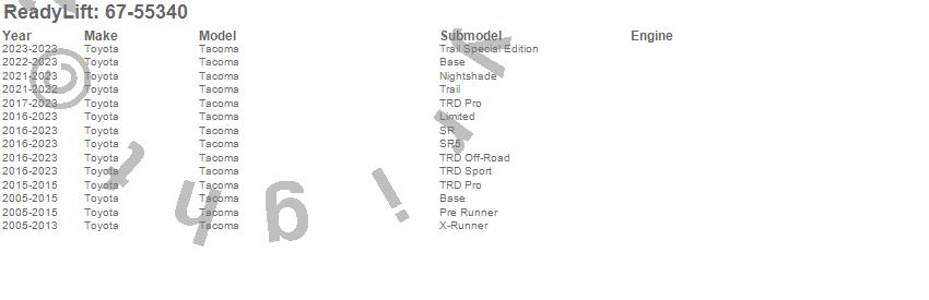 Brand: ReadyLiftPart Number: 67-55340Control Arm Type: UpperUPC: 194933345601