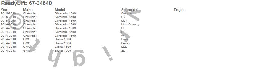 Brand: ReadyLiftPart Number: 67-34640Control Arm Type: Upper - /Cast AL Or Stamped Steel UCAUPC: 194933344253