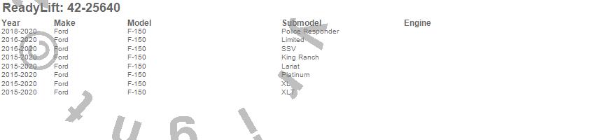 Below is an abbreviated list of applications for the Big Lift Kit w/Shocks.F-150, Ford, 2020, 2019, 2018, 2017, 2016, 2015