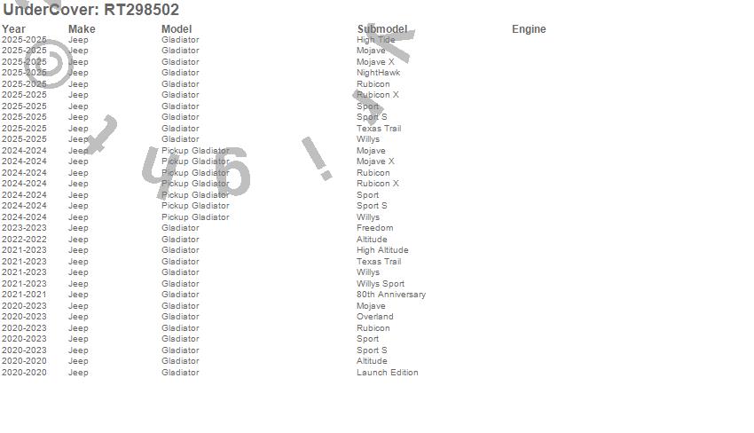 Below is an abbreviated list of applications for the Ascend Rack.Gladiator, Pickup Gladiator, Jeep, 2025, 2024, 2023, 2022, 2021, 2020