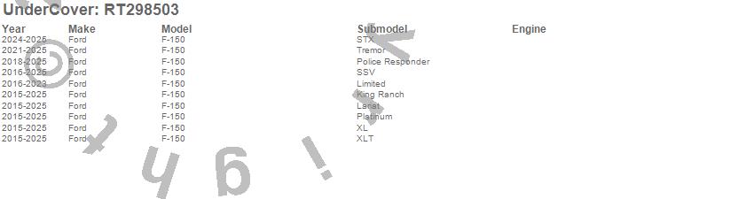 Brand: UnderCoverPart Number: RT298503Truck Bed Rack Type: UPC: 840114332860