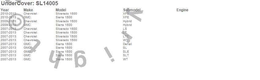 Below is an abbreviated list of applications for the Select Hard Folding.Sierra 1500, Silverado 1500, Chevrolet, GMC, 2013, 2012, 2011, 2010, 2009, 2008, 2007