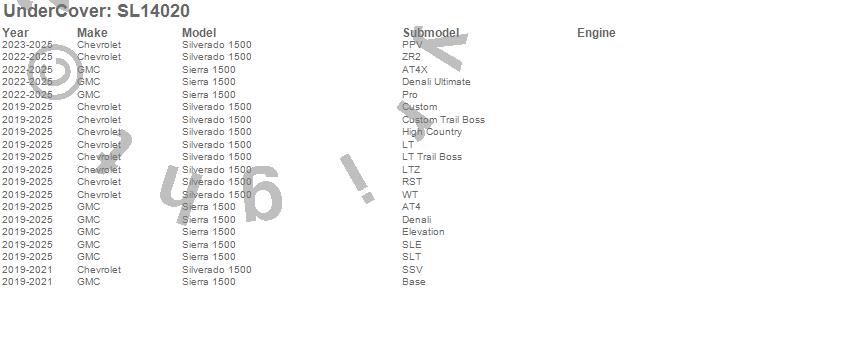 Below is an abbreviated list of applications for the Select Hard Folding.Sierra 1500, Silverado 1500, Chevrolet, GMC, 2026, 2025, 2024, 2023, 2022, 2021, 2020, 2019