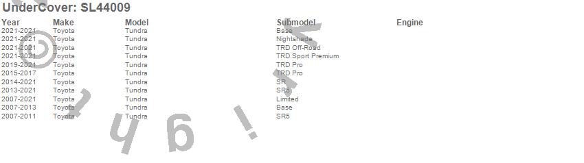 Brand: UnderCoverPart Number: SL44009Tonneau Cover Type: Black TexturedUPC: 840114339371