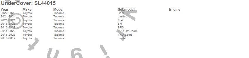 Brand: UnderCoverPart Number: SL44015Tonneau Cover Type: Black TexturedUPC: 840114339401