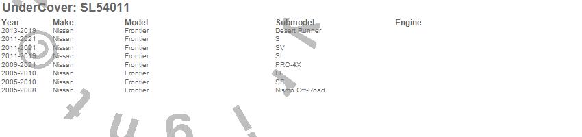 Brand: UnderCoverPart Number: SL54011Tonneau Cover Type: Black Powder Coat FinishUPC: 840114339456