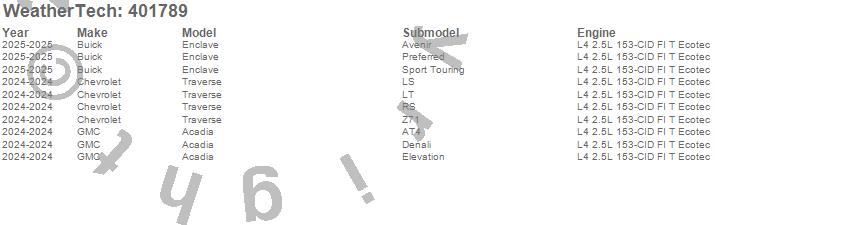 Below is an abbreviated list of applications for the Cargo Liner.Acadia, Enclave, Traverse, Buick, Chevrolet, GMC, 2026, 2025, 2024