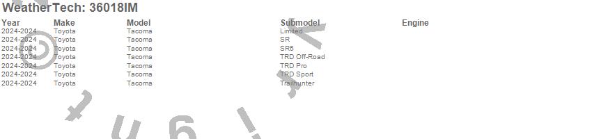 Brand: WeatherTechPart Number: 36018IMTruck Bed Liner Type: UPC: 787765880350