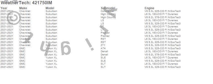 Below is an abbreviated list of applications for the SeatBack Cargo Liner HP.Suburban, Yukon XL, Chevrolet, GMC, 2021