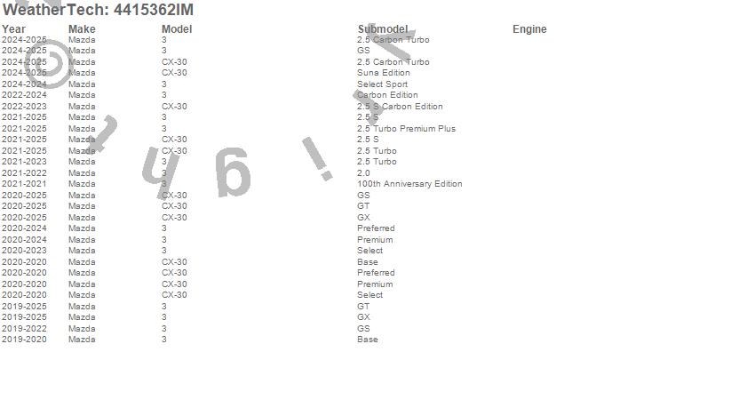 Below is an abbreviated list of applications for the FloorLiner HP.3, CX-30, Mazda, 2026, 2025, 2024, 2023, 2022, 2021, 2020, 2019