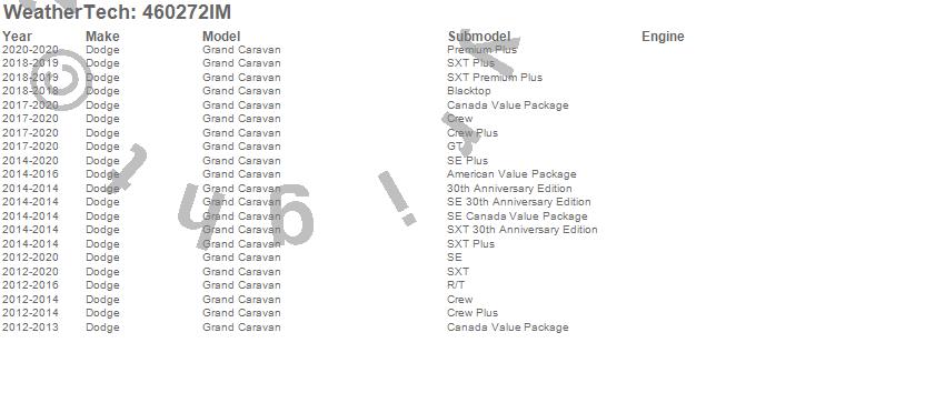 Below is an abbreviated list of applications for the FloorLiner HP.Grand Caravan, Dodge, 2020, 2019, 2018, 2017, 2016, 2015, 2014, 2013, 2012