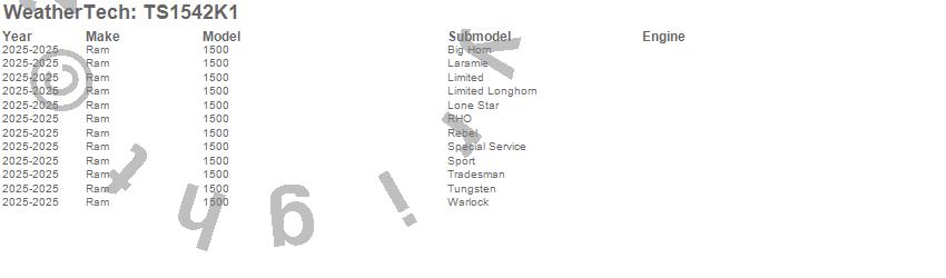 Below is an abbreviated list of applications for the WeatherTech SunShade Full Vehicle Kit.1500, Ram, 2026, 2025