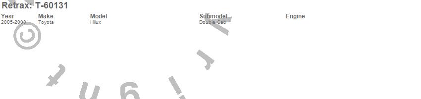 Below is an abbreviated list of applications for the RetraxONE XR Retractable Tonneau Cover.Hilux, Toyota, 2008, 2007, 2006, 2005