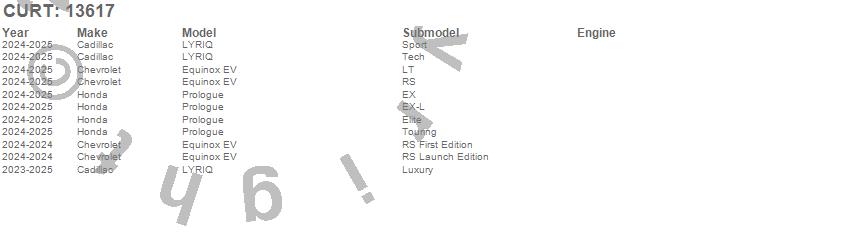 Below is an abbreviated list of applications for the Class III 2 in. Receiver Hitch.Equinox EV, LYRIQ, LYRIQ-V, Prologue, Cadillac, Chevrolet, Honda, 2026, 2025, 2024, 2023
