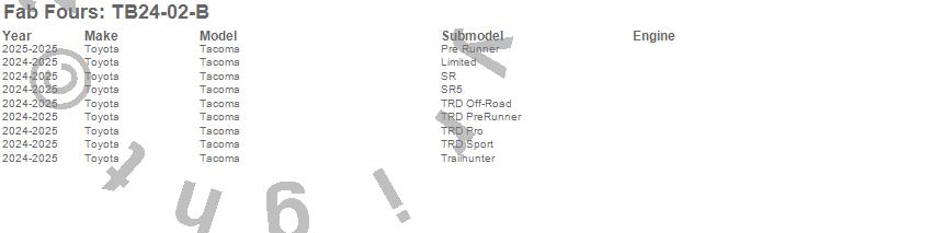 Below is an abbreviated list of applications for the Vengeance Winch Front Bumper.Tacoma, Toyota, 2025, 2024